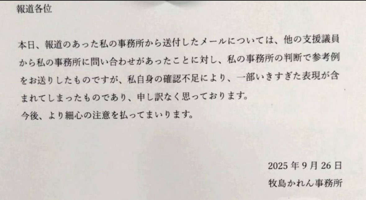 ステマ主犯の牧島かれん議員は、自民党広報本部・ネットメディア局長なのよね。そりゃ自民党も腐るわな。 @shino7878shino on X自民党総裁選をめぐる、小泉陣営のいわゆるステマ問題をめぐって、牧島かれん議員がコメントを出しました。 @大井ただたか 2025-09-26 13:13:02 2 thumb_up 3 chat_bubble 2 thumb_up 3 chat_bubble